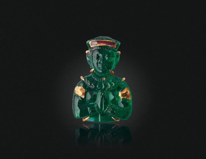 Резная фигурка индуистского святого, из колумбийского изумруда, с рубиновыми и золотыми инкрустациями, XVII век. Из коллекции лорда Гленконнера. Маленький каменный слон. Нишапур, Иран, X век... далее