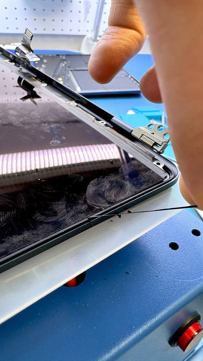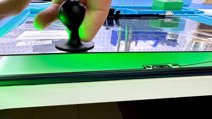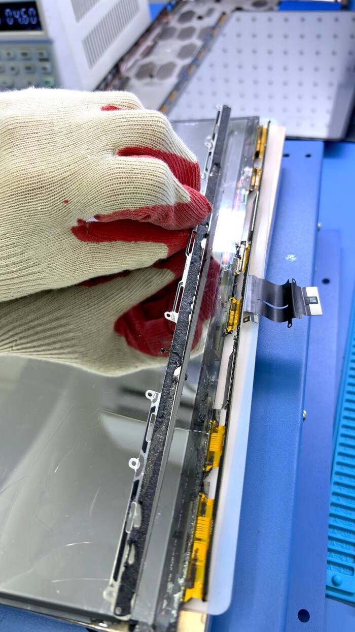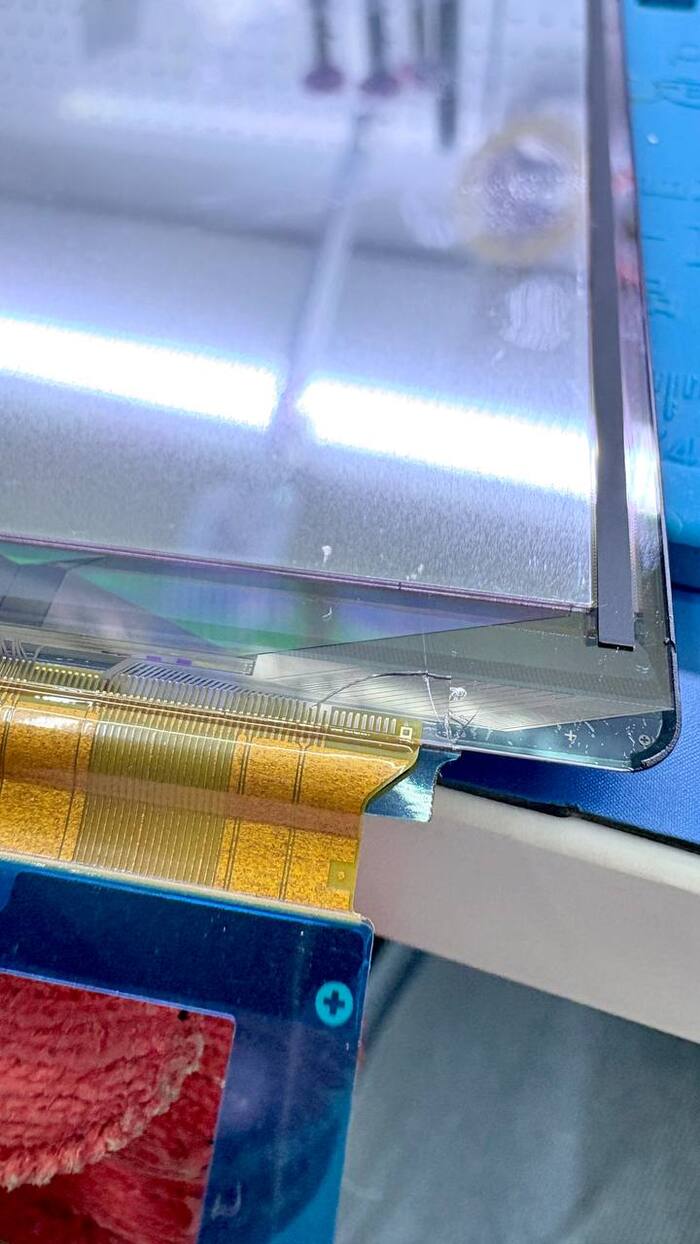 Малейшее лишнее усилие — и стекло начинает крошиться. Мелкие осколки могут попасть на подсветку, и тогда придётся менять уже и её.