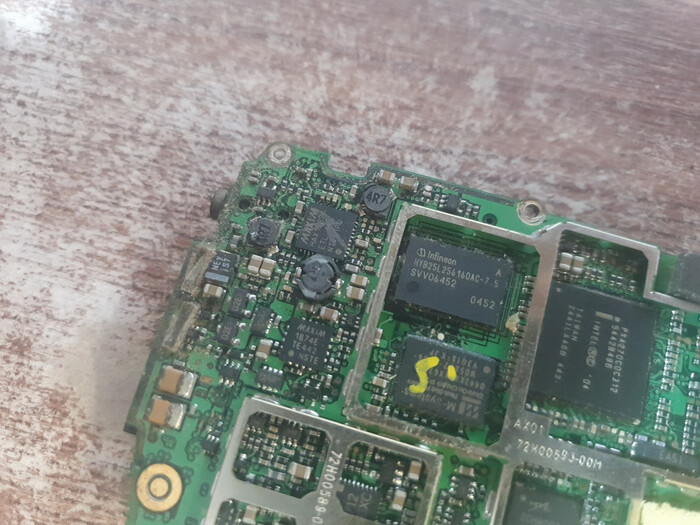 Рядом с PMB6258 расположился чип PMB2259, который выполняет роль VGA-драйвера или же усилителя сигнала. Вполне возможно, что это некий предусилитель, поскольку рядом с флэш-памятью скрывается ещё один безымянный GSM-усилитель.