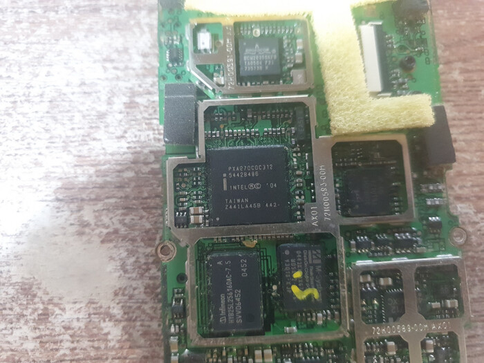 Далее мы видим сердце основной части устройства — топовый для своих лет чипсет Intel PXA270. На самом деле, о крутости этого процессора можно рассказывать часами, чипы на базе микроархитектуры XScale были легендарными в гиковских и промышленных кругах благодаря хорошей документации, отличной производительности и наличию порта Linux. Но давайте по порядку: