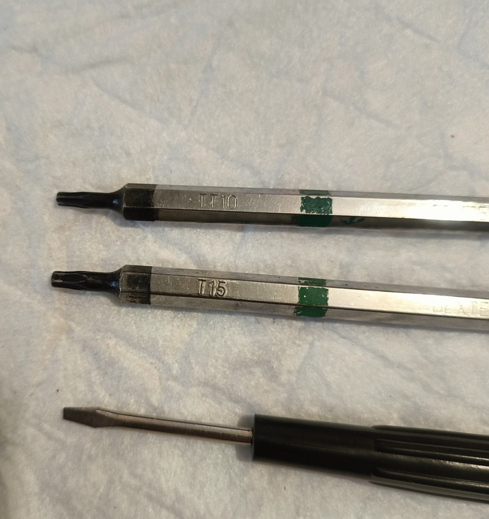 Для разборки понадобились биты Т15 и Т10, в одном месте крепеж глубоко, на помощь пришла обычная советская....
