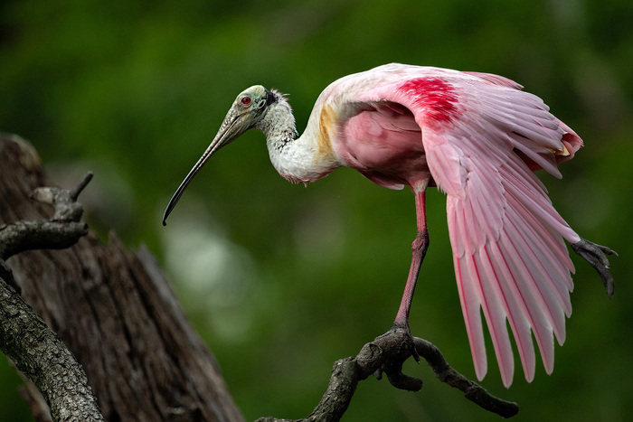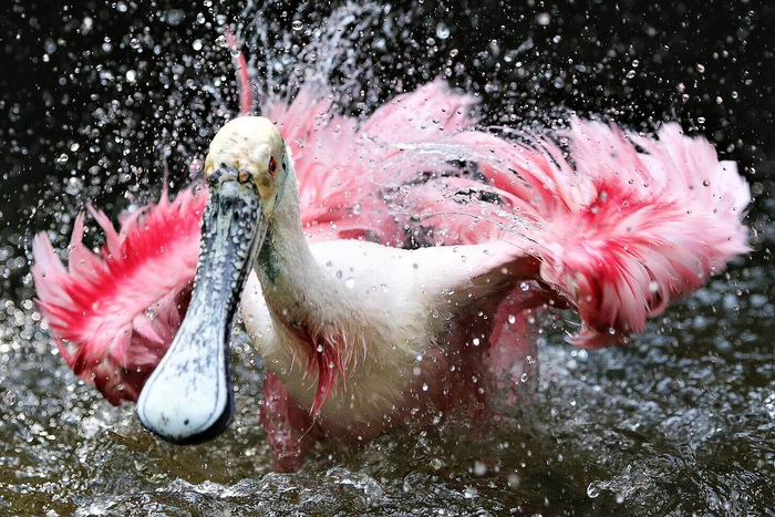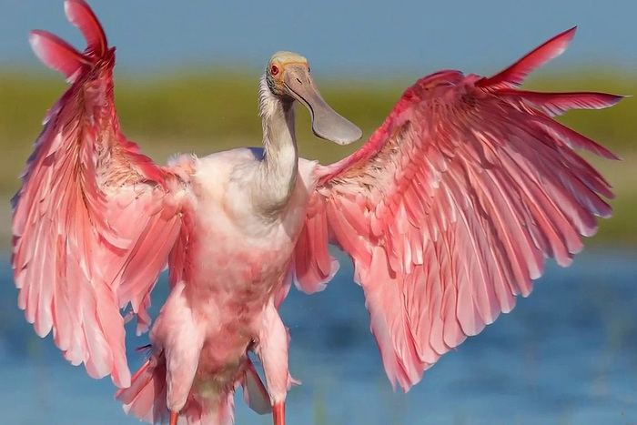 Итак перед вами, нет не инопланетянин прилетевший на Землю заключить вас в дружеские объятия и не ангел с некрасивым лицом. Это розовая колпица (Platalea ajaja), которая обитает на другом краю мира, если, конечно, слово "край" применимо к шару (да простят меня сторонники гипотезы плоской Земли).