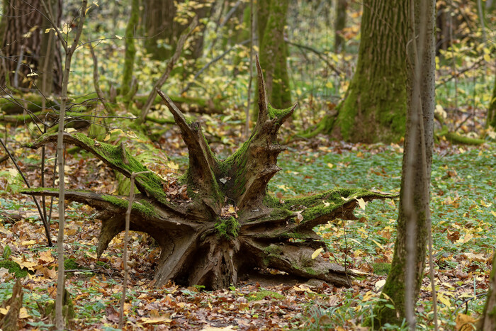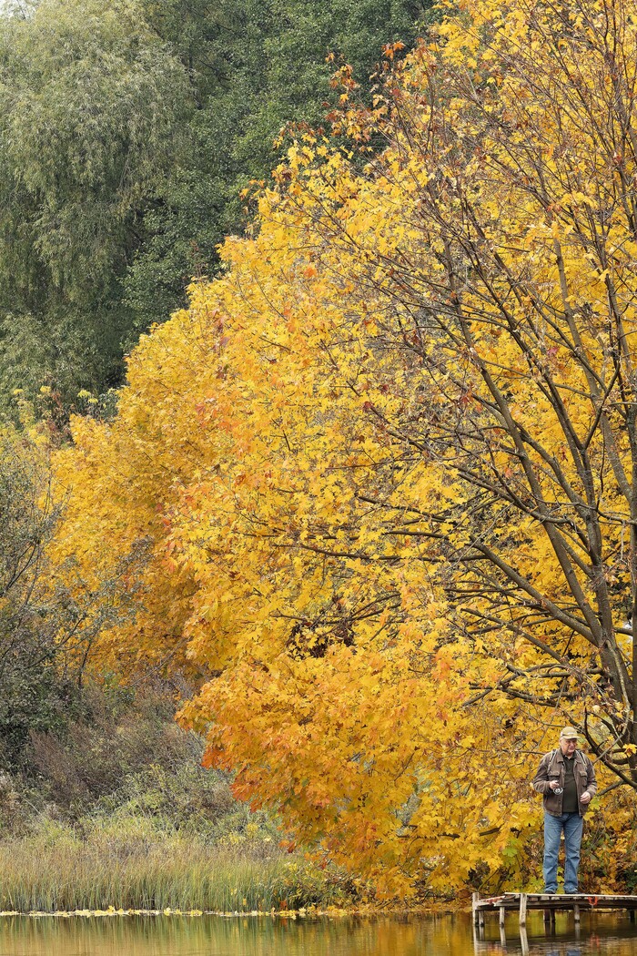 В лесу было жёлто. Вот прям так и было. Повсюду со стороны земли исходило золотое сияние. Его было настолько много, что пришлось менять баланс белого на фотке с облачно обратно на солнечный день. И то не помогло особо. И потом пришлось убирать желтизну при обработке.
