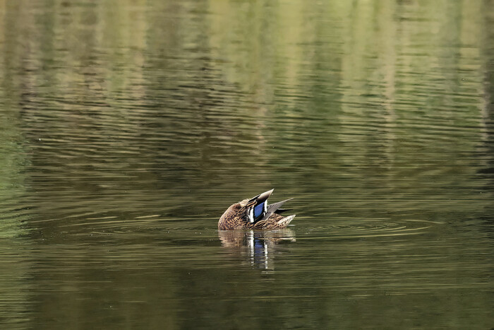 Кряквы так же придерживаются этого принципа. Пока я стоял на берегу одного из тамошних прудов, ко мне подплыла самка.