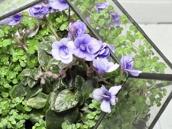 Почти все были выращены мной буквально из листочка/маленькой детки и на фото имеют уже взрослый размер. Под каждым фото оставлю название сорта фиалки. Некоторые из них высажены во флорариумы, а некоторые пока сидят в горшочке и ждут своего часа.